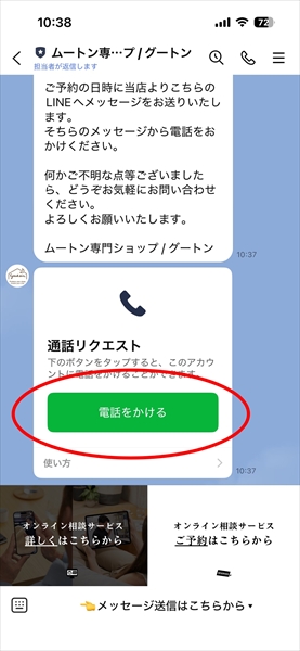 ⑤予約の日時に届いたメッセージでLINE電話をかける
