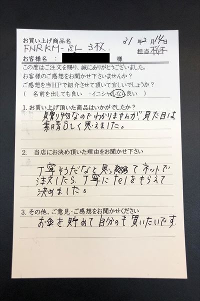 目の前で丁寧に説明して下さり、納得して買う事ができました。