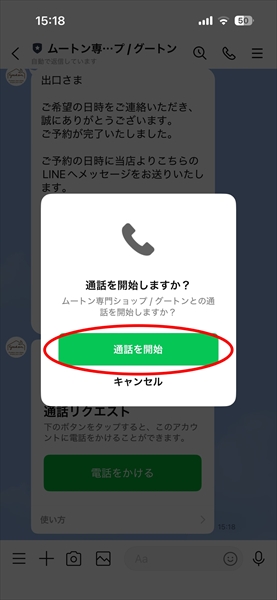 ご予約の日時に、当店より「通話リクエスト」のメッセージが届きます。